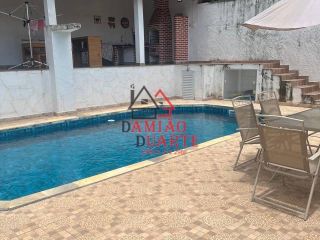 Casa com ampla e reformada área de lazer com piscina, churrasqueira e edícula.